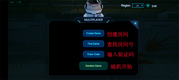 2、联网方法非常简单,你可以选择创建房间或搜索房间号加入,如果你独自一人,还可以选择随机游戏进行冒险。