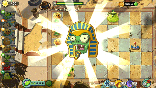 杀死僵尸,获取能量豆。光是杀死所有僵尸,就能获得4个能量豆。