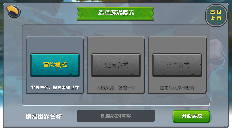 2、选择你喜欢的游戏模式,然后点击“开始游戏”进入世界