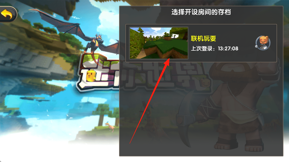 7、从列表中选择你之前创建好的存档地图作为联机世界