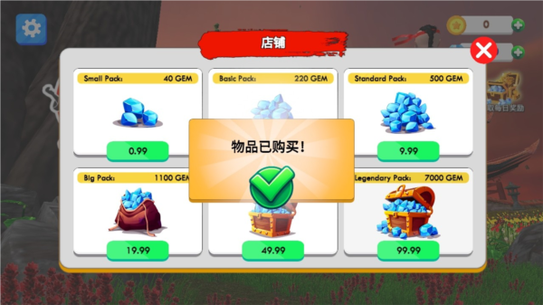 2.随便购买一个礼包会显示成功。