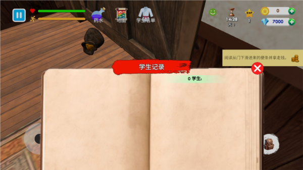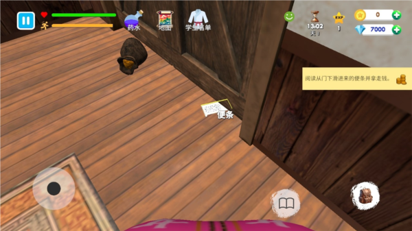 5.阅读便条拿走钱。