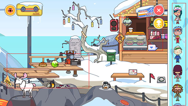 3、点击右上角第一个头像可更换角色表情,第二个头像则用于选择并放置角色到雪地场景中;