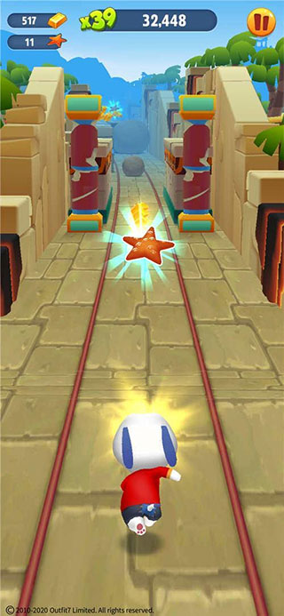 道具系统是提升生存率与得分效率的重要助力。佩戴头盔可免疫一次致命撞击;拾取磁铁能自动吸附周围金币,快速累积财富;而使用飞机道具则可短暂升空飞行,避开地面复杂陷阱,享受片刻空中畅游的惬意。