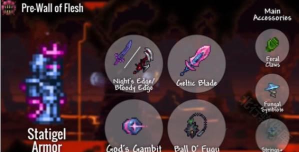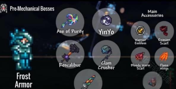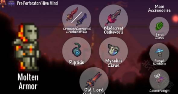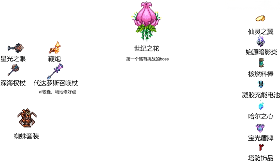 饰品:天羽之翼、矮人项链、真菌块、伏打凝胶、灵魂浮雕、塔防饰品