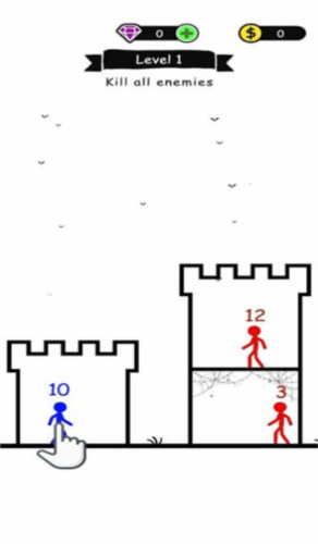 是一款好玩的火柴人格斗类手游,游戏画质高清内容丰富玩法多样,在这里玩家需要运用自己的策略去排兵布阵击杀对面的敌人,干掉了就可以叠加,然后就可以干掉更多数字大的敌人。爬塔战斗,根据大小顺序来消灭。