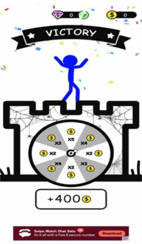 2、然后大家通过拖动自己的火柴人攻击比自己低级的火柴人来提升自己的等级。