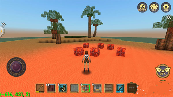建议首次进入时新建一个创造模式存档。进入后你会出现在一个固定小屋旁,这是默认出生点。众所周知,天空城位于高空区域,普通模式下需高等级才能抵达。而在创造模式中,只需点击飞行按钮即可轻松升空。利用这一特性,你可以提前探查天空城结构与资源分布。