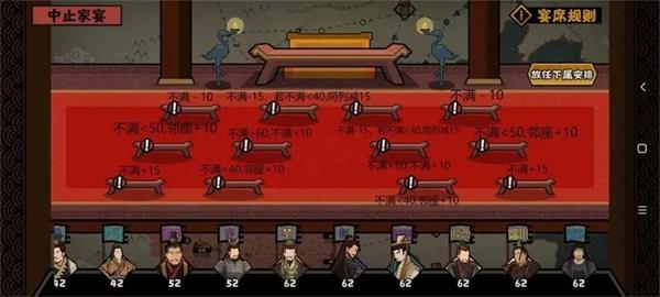 举办家宴的前提是君主威望值达到80以上,首次开启后每年均可举行一次(前提是未发生叛乱)。值得注意的是,吴王通常拒绝出席——据传他担心酒酣耳热之际按捺不住怒火,当场与景帝动手。