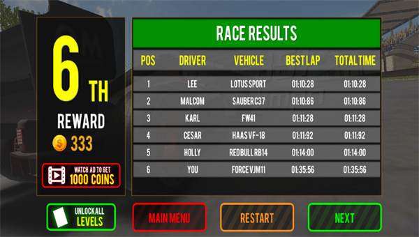 - 赛事期间加入真实的进站换胎与加油动画,增强沉浸感