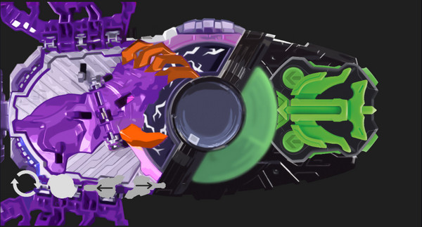 5、插入僵尸形态专属带扣,并激活绿色能量光效,还原剧中经典暗黑变身场面。