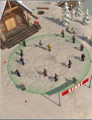 每场比赛都是从起始区域开始的这个区域在冰钓竞赛中也叫称重区。该区域用绿色圆圈表示。