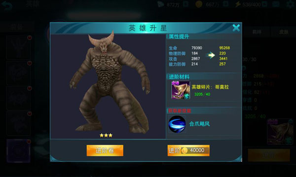 升至三星需消耗40个英雄碎片,且等级达30级。进阶后将解锁第三个主动技能,等级上限升至40级,并增加两个源晶槽,战力迎来第一次质变。