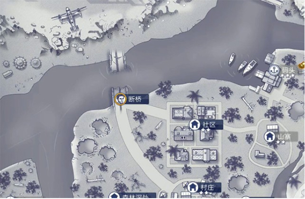 2、大门打开后打开游戏小地图查看当前位置,现在我们需要来到下图标记的地点。