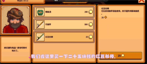 3、然后可以来到商店购买更高级的鱼竿,比如红豆杉棒