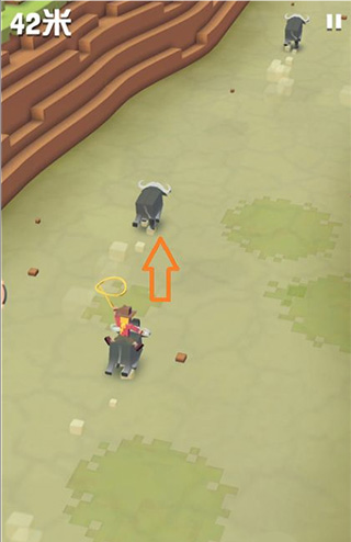 1、游戏初始,主角会骑着一头小野牛在草原上飞驰,此时长按屏幕不放,当接近前方目标动物时向前滑动,即可完成跳跃并尝试捕捉。