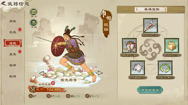 每个武将都有对应的宿命武将,解锁宿命武将可以激活宿命效果,激活后武将战斗力会得到显著提升。部分合击技需要两个武将同时上阵方能生效。