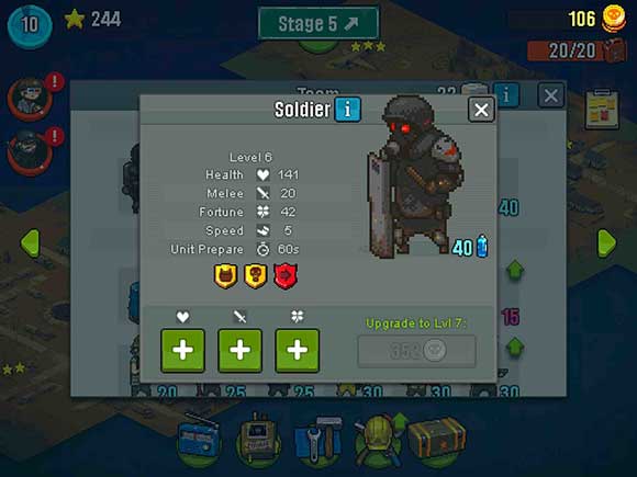 1、利用战斗中积累的勇气值,召唤不同兵种加入前线作战。