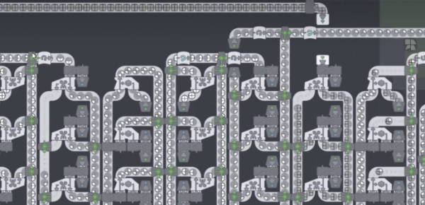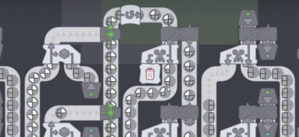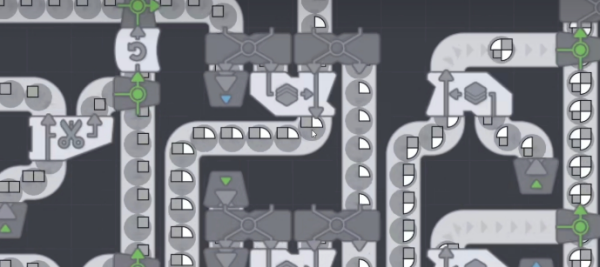 4、接着就是另外的方形产出进来,然后与前面切出来的1/4扇形的物品进行合并,最后,用材料将其转换方向就又完成了图形的另外一边。最后,通过生产线将上述两个左右各一半的物品进行合并即可。最后便得出了本关我们最主要的资源,完成目标。