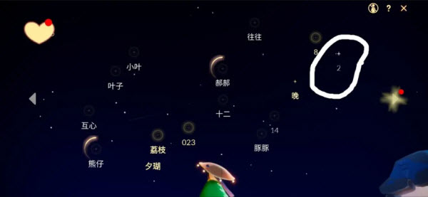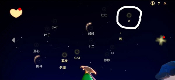 ③双方都未互送心火的星型:星环和中心点都暗(几乎只能看到名字,看不到星星)