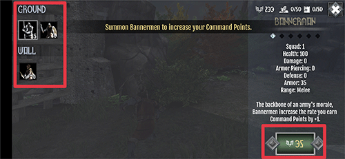4、随着旗手获得指挥点后,玩家还需要花费指挥点来召唤步兵和弓箭手投入战斗