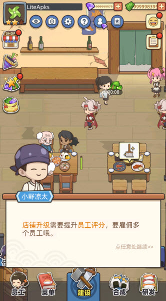 3. 丰富的经营策略玩法,包括食材采购、员工管理以及店铺装修等。