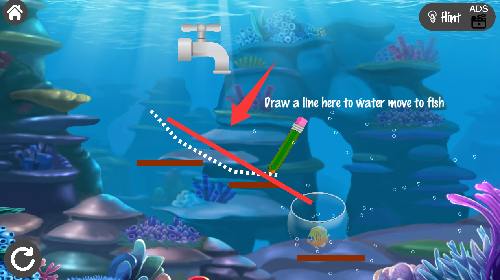 2、画一条线把水引流到鱼缸里养活它。
