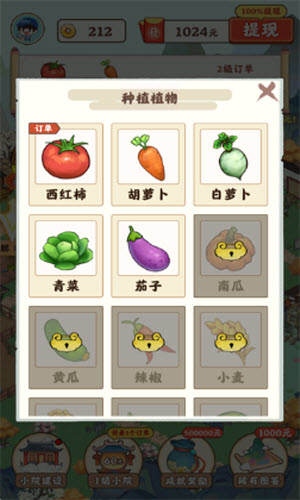 3、我们点击订单列表,可以看到相应的作物,我们选择作物后即可开始种植。