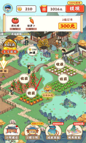3、游戏不同其他游戏,拥有特色的订单系统,玩家需根据顾客订单来种植或养殖不同的作物或动物,可获取丰厚奖励。