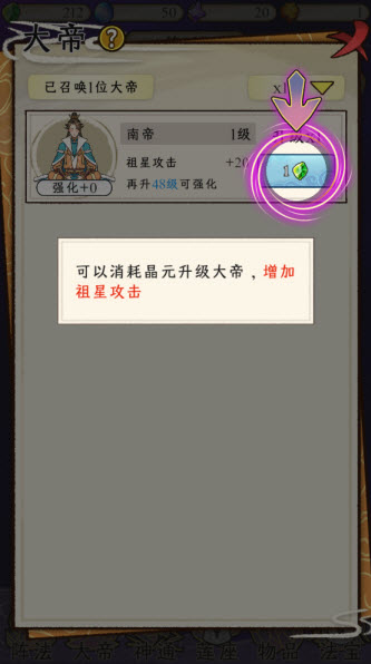 4、可以消耗晶元升级大帝,增加祖星攻击。
