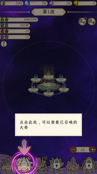 3、点击屏幕下方的大帝按钮,可以查看已经召唤的大帝。
