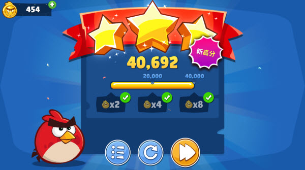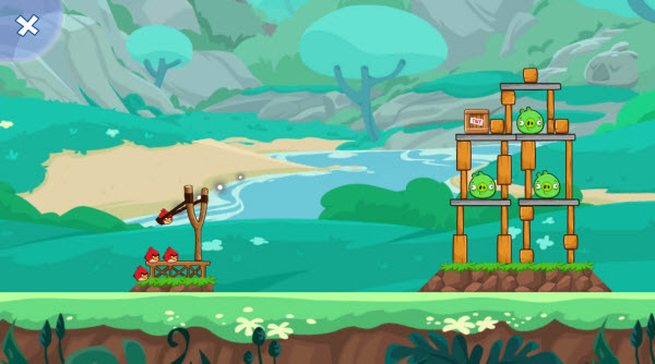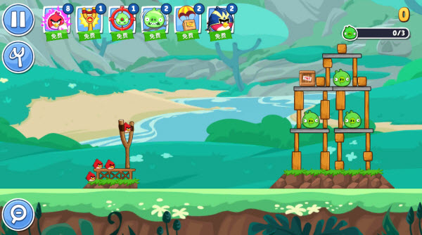 3、关卡内通过往后滑动屏幕来发射小鸟。