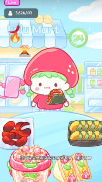 1、游戏中玩家赚取到金币之后可以前往便利店购买喜欢的零食,然后进行直播。
