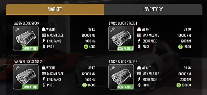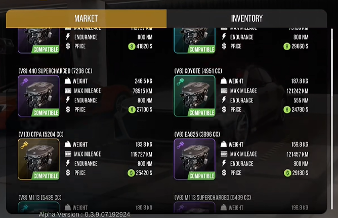 5、通过点击ENGINE MARKET就能对引擎进行更换;