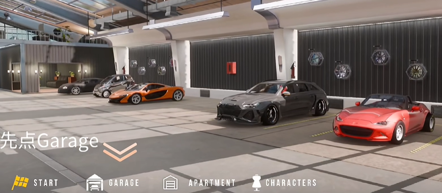 1、进入游戏后,点击画面下方的GARAGE进入车库;