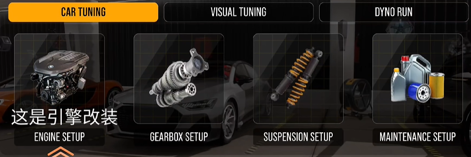 4、车辆设置中默认的第一项ENGINE SETUP就是引擎设置;