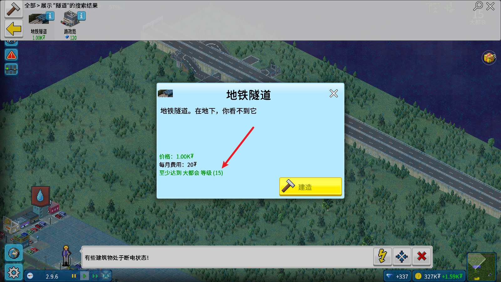 1、地铁系统是高阶城市建设的重要标志。首先,你需要将城市等级提升至15级,方可解锁地铁隧道建造权限。