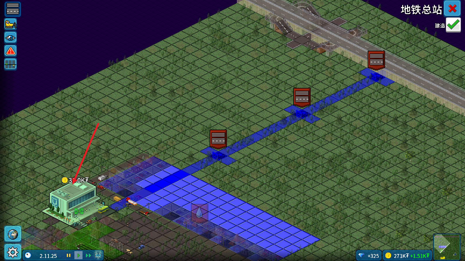5、最后别忘了建造一个宏伟的地铁总站,作为整条线路的核心枢纽,彰显城市现代化风貌。
