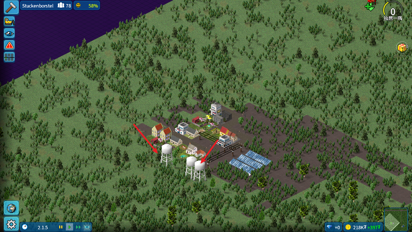 6、别忘了城市的生命线——供水系统。建造水塔或水泵站,并通过管道将清水输送至千家万户。