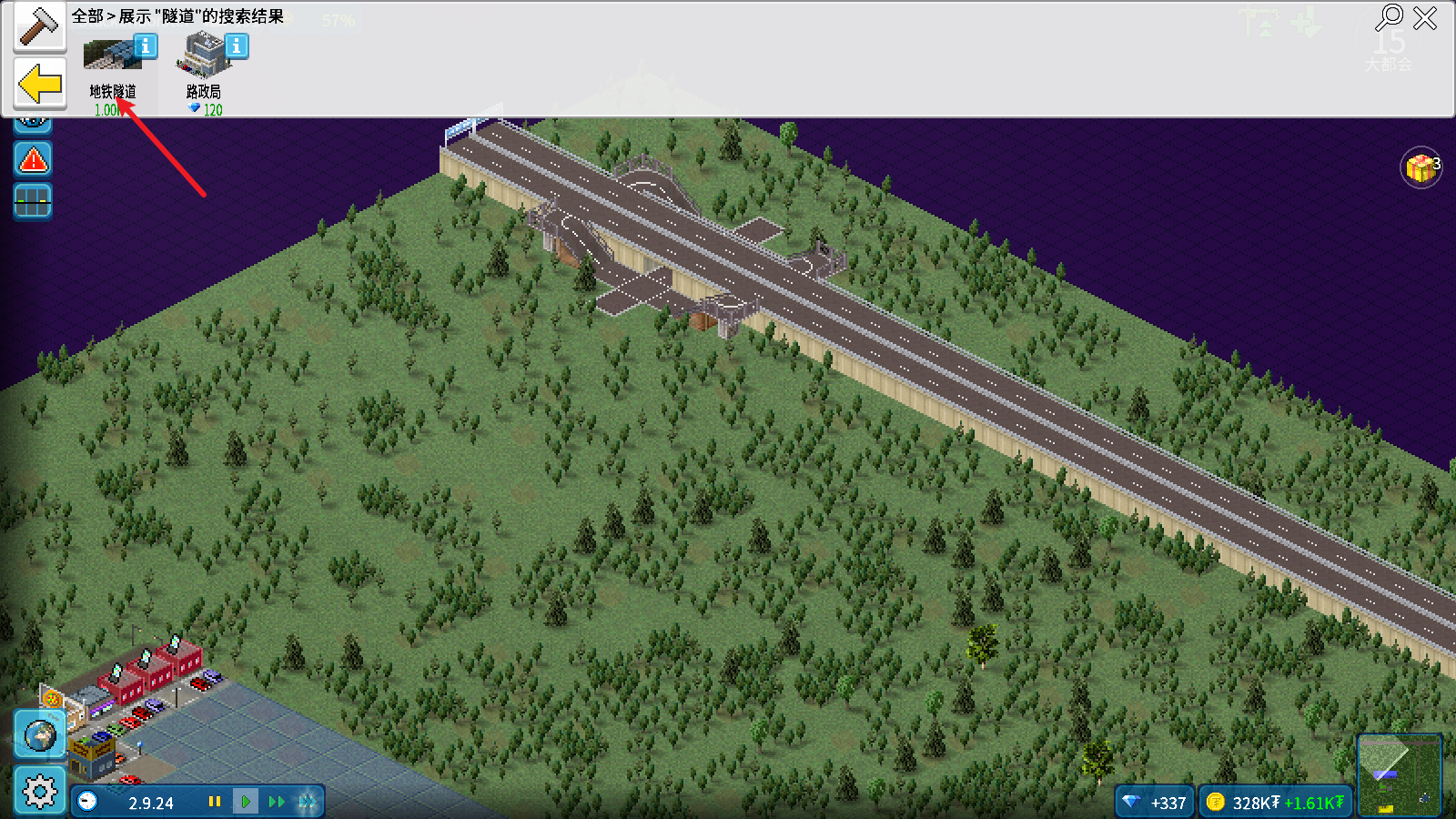 2、达到条件后,在建筑菜单中找到“地铁隧道”选项,点击即可开始规划线路。