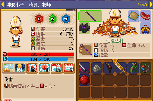 3、牧师:玩这个游戏牧师基本必备,牧师的两个唯一特性实在太变态,群体驱散和全队回蓝,有牧师在全程不需要休息和吃药。