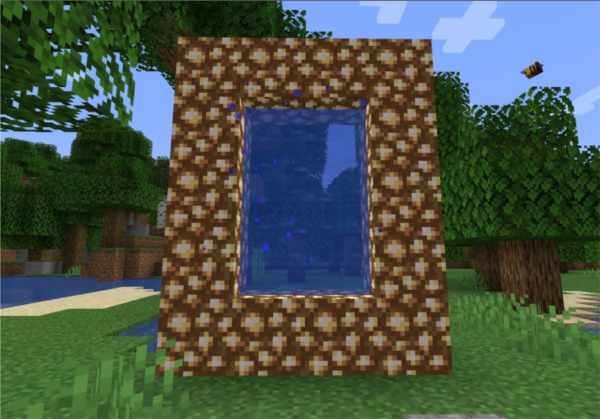 荧石可以用任何方式放置,相邻的传送门可以互相使用框架上的荧石。通过与烈火相对应的流水来激活这座传送门。无论玩家搭建的传送门有多大,在另一个维度生成的传送门都是最小尺寸(4×5)。