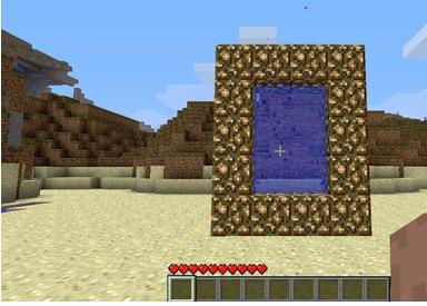 3、制作完成天堂门之后,根据我的世界游戏版本的不同,我们启动天堂门的方式有所不同,如果制作完成后无法使用,我们可以使用打火石点击天堂门中心,进行激活