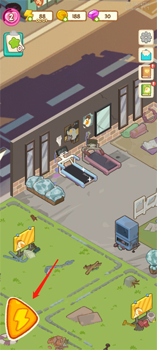 打开肥鹅健身房最新版本,点击左下角的闪电图标。