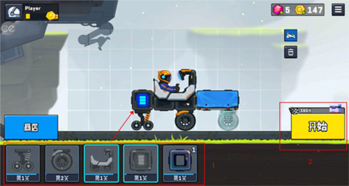 3、利用不同数量零件组建出自己赛车,全面升级发展,提高赛车性能。
