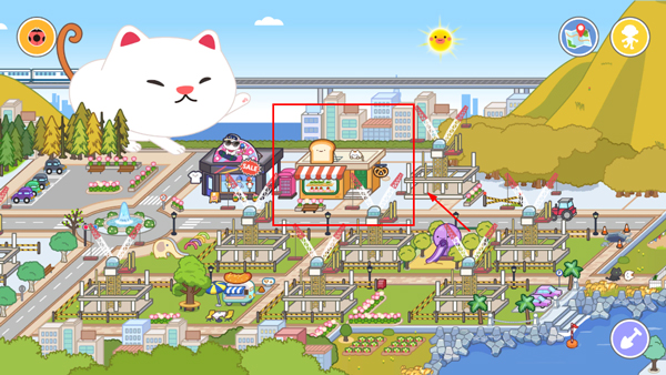 1、打开米加小镇世界面包店,点击开始游戏,进入游戏后,找到如下地点即可进入面包店;