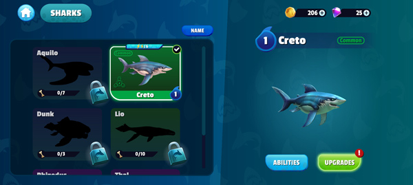 2. 通过完成任务和积累经验值来解锁更高级的鲨鱼种类。
