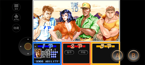1、进入恐龙快打手机版游戏内,我们选择投币-开始,就会进入选人界面。