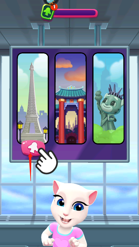 8、猫猫想去埃菲尔铁塔旅游,点击图片上的飞机图标,让小猫咪如愿吧。