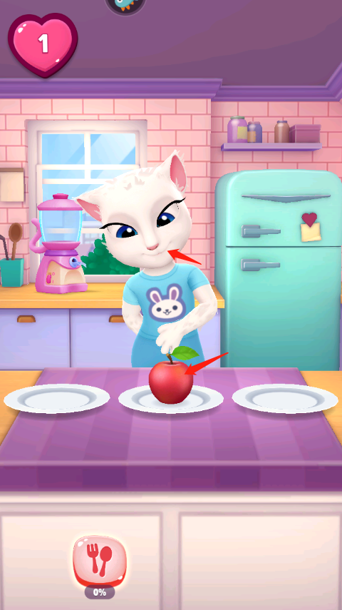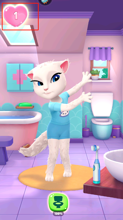 4、上完厕所后小猫美女的心情就会变好了,可以看到左上方得到了一颗心心啦。